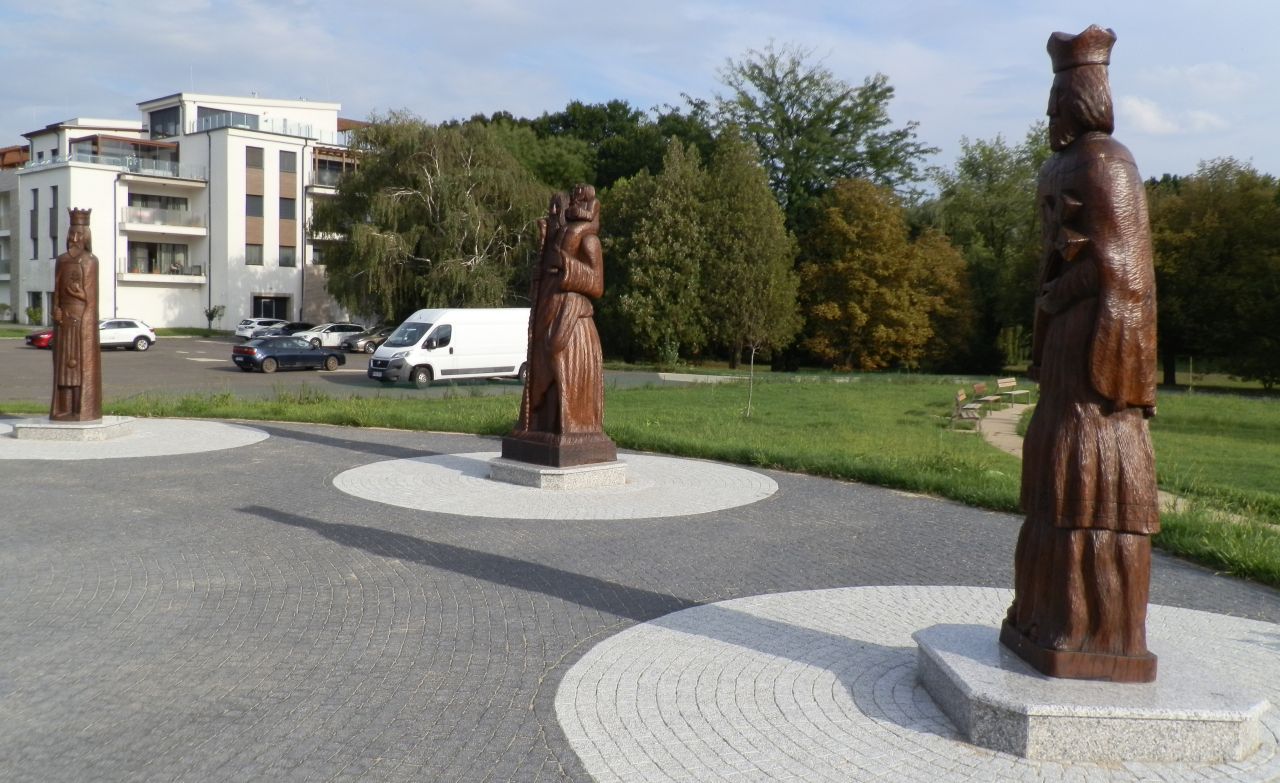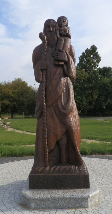 A szolnoki Vízügyi emlékparkba – szemben állva a faragványokkal balról jobbra – Szent László, Szent Kristóf és Nepomuki Szent János alakjait faragta meg. Három olyan szentét, akik valamilyen módon köthetők a vízhez, a vízből élőkhöz. Szent László királyunkhoz (1077-1095) ugye nagyon sok legenda kapcsolódik, többek között az, amely szerint imájával a sziklából vizet fakasztott katonáinak. A középre helyezett Szent Kristóf vállán gyermek képében a teremtővel látható, hiszen a III. században Szamóban élt Kristóf a legenda szerint egy nehezen járható folyón egyszer gyermek képében az „urat” cipelte át a túlpartra, hogy utána életét a térítésnek szentelje. A harmadik alkotás a csehországi születésű Nepomuki Szent János. Az egykori prágai érseki helynököt 1729-es szentté avatása óta a folyók, a hajósok, a hidak, a vízimolnárok és a halászok védőszentjeként tisztelik. Nem véletlen, hogy Szolnok egyik legrégebbi köztéri szobra is őt ábrázolja, amely a Vártemplom mögött áll.