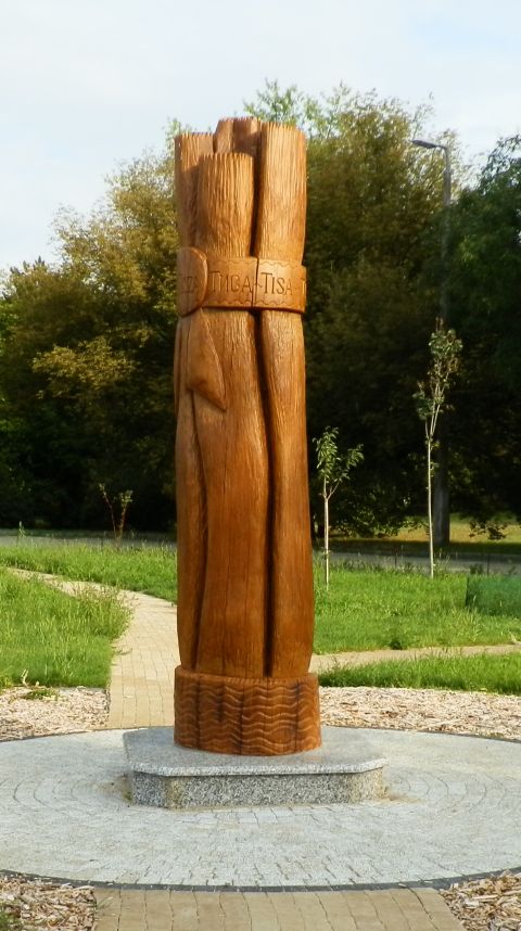 A sétánytól távolabb, a három szent mögött egy negyedik faragvány is található, ami a Tisza által összekapcsolt öt ország – Ukrajna, Románia, Szlováki, Magyarország és Szerbia – 2017 és 2019 közötti együttműködésére emlékeztet. Legyen is bármi annak az együttműködésnek, a talán csak a vízügyesek által ismert tartalma. A többség számára ez a hely amúgy is inkább a 2000 tavaszi nagy árvízre emlékeztet, amikor jóval a Tiszaliget szintje fölött hömpölygött a folyó, és többek között elpusztította az 1960-as évektől itt álló Szolnoki Szakaszmérnökség épületét. Az önmagát a Tisza fővárosaként is meghatározó, a szőke folyótól olya sok mindenben függő településen talán nem is indokolatlan egy ilyen emlékhely, ami persze majd akkor töltheti be igazán park funkcióját, ha a gondosan elültetett növények megnőnek. Bízzunk benne, hogy ez előbb lesz, mintsem valakinek eszébe jut erre a remek területre valami batár házat felhúzni!