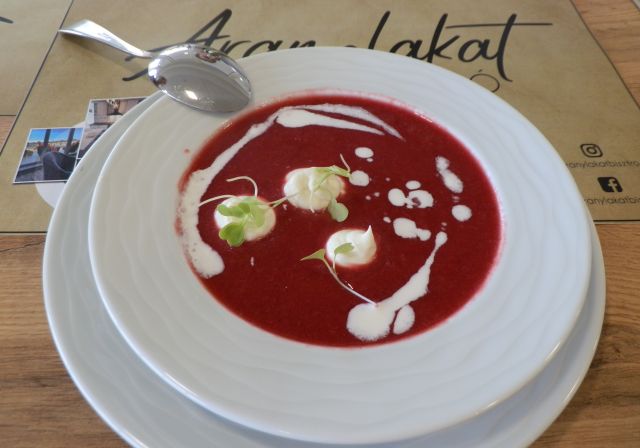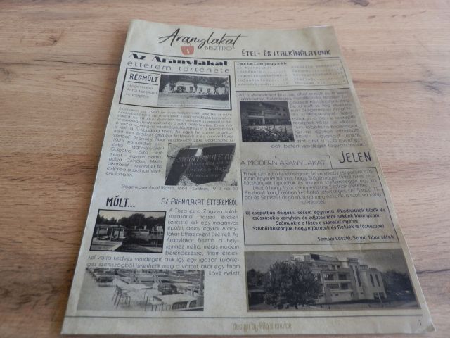 Márpedig pár héttel a nyitás után úgy tűnik, az Aranylakat bisztró működtetői nagyon komolyan gondolják ezt az egészet. Egyrészt tisztelettudó és tiszteletreméltó étlapot állítottak össze, amin nemcsak bemutatják a szerény, de elégséges kínálatukat, de fejet hajtanak a hely szelleme előtt is. Másrészt beszállnak a szolnoki, déli menüs piacra, ami a lehető legnagyobb kihívás számukra a viszonylagos távolság miatt, ugyanakkor a legjobb reklám lehet. Harmadrészt végre tényleg bisztrót akarnak csinálni. Azaz nem presszót vagy kávéházat, ahová egy kávéra, üdítőre, süteményre lehet betérni. És nem is éttermet, amelyik több oldalas étlappal akarja elkápráztatni a vendégeket. Viszont reggel héttől lehet náluk korrekt választékból reggelizni – ennek kipróbálásával még tartozom magamnak is -, és a napi menü mellett néhány tételből a la carte ebédelni.
