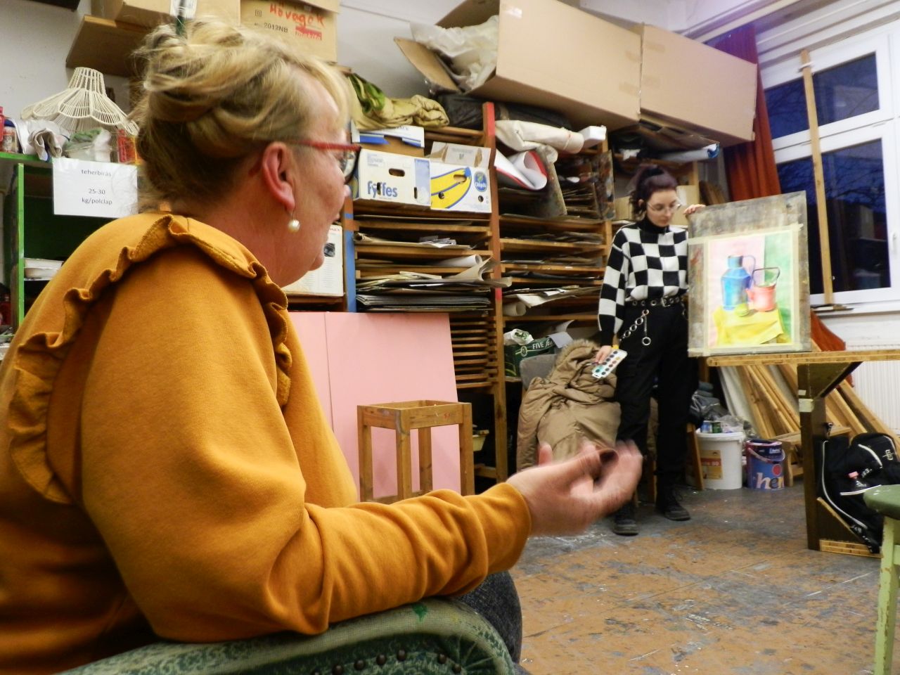 – Elképesztő mennyiségű alkotás között ülünk a Széchenyi-lakótelepen, a Zöld házban, amelynek az emeletén található a Vizu Alapfokú Művészeti Iskola. Mindent elraknak?