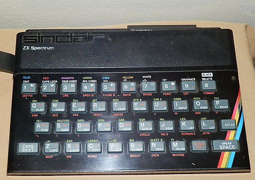 Közvetlenül mellette életem első, saját számítógépe, egy ZX Spectrum köszön vissza a maga műanyag billentyűivel. Csak a velem egykorúak, meg az idősebbek emlékezhetnek arra, hogy ilyesmit nem lehetett idehaza beszerezni. Az enyémet is a nagybátyám hozta Bécsből, és csak a vámot engedte kifizetni az akkor 25 ezer forintnyi schillingbe kerülő gép után.