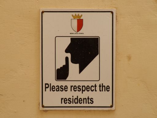 Igaz, sok mindenre szeretik felhívni a figyelmet. Persze nem felszólító vagy tiltó módban, hanem csak kérve vagy óvatosan figyelmeztetve. Például nagyon sok helyen látni olyan kis táblákat, amelyek megkérik az arra járókat, hogy legyenek tekintettel az ott élőkre, és ne zajongjanak. Szolnokon is elkélne néhány ilyen felirat, főleg a belvárosban, a kocsmai vonulási útvonalakon. Meg olyan kis táblácskák is, amelyek a máltai építkezéseknél – legyen szó egy szálloda építéséről vagy csak egy belvárosi lakás felújításáról -, az utcafrontra (tehát nem a polgármesteri hivatalban!) kifüggesztve láthatóak. És kiderül róluk, hogy ki és mit csinál az adott helyen, ki adott arra engedélyt, és az illetékesek hol érhetők el. Talán a tengerész mentalitás miatt, ami arra tanította őket, hogy közük van egymáshoz, felelősséggel tartoznak a másik iránt.