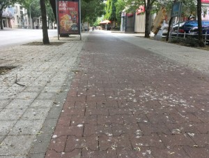 A Boldog Sándor István körút eleje – a Baross és az Ady között – a galambok körében igen kedvelt, aminek az az eredménye, hogy az ottani járdák általában, azaz a legtöbb napon kifejezetten szégyellnivalók (szerintem). A Vízügyi székház oldalában szőnyegszerűen szárad a galambürülék a viacolorra, de a néhai sportbolt oldalán is komoly szlalomozást igényel, ha valaki galambszarba lépés nélkül akar ott átjutni. Tudom, nem ezek az egyetlen undorítóan kinéző járdák a városban, a Kossuth téren, az Árkád folyosóin, de a Barosson és máshol is épp elég szégyenfoltot lehet(ne) találni.