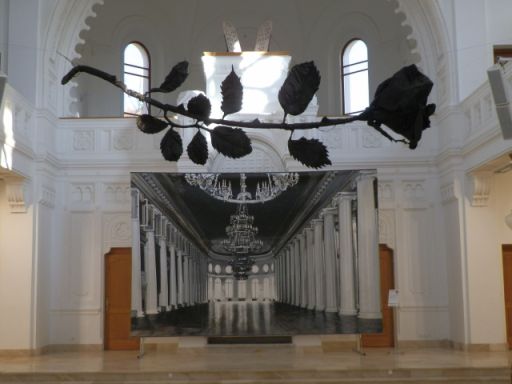 Nyári István alkotása egy hatalmas, fekete-fehér festmény, amit pont a bejárattal szemben helyeztek el, és egy, az emeleti galériákat majdnem átérő, azok közé kifeszített fekete rózsa. Ezek külön-külön is lenyűgözőek, hiszen a képnek olyan mélysége van, hogy szinte beszippant a megfestett bálterembe. A rózsa pedig elképesztő könnyedén lebeg felettünk. Ám belépve az ajtón hirtelen nem tudja eldönteni az ember, hogy az a rózsa hol van. Káprázik a szeme vagy becsapták, benne van a képben vagy sem? Ráadásul nemcsak együtt, de külön is értelmezhetőek, sőt vonzzák a tekintetet, nem lehet eltelni velük.