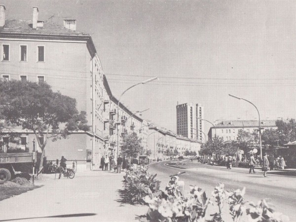 A képet betöltő „Ságvári körúti lakások” építése viszont már 1953 őszén elkezdődött, hogy aztán 1954 és 1959 között folyamatosan adják át a „sztálinbarokk” épületekben lévő otthonokat. Ennek a sajnos ma alig házsornak a jelentősége nemcsak abban áll, hogy a Rákosi-korban megjelenő hazai brutalista építészet egyik „legszebb” szolnoki példája, hanem abban is, hogy az addig nem létező Ságvári út – majd 1959-től körút – mentén ez a város első, nem ipari üzemhez kapcsolódó lakótelepe. A cukorgyári és a papírgyári minitelepek még a háború előtt készültek, és az adott gyárakhoz kapcsolódtak. Itt viszont a város észak-déli, a lakó- és az iparterületeket összekötni hivatott tengely egyik eleme mentén kifejezetten a város építkezett, Szolnok már akkor is feszítő lakásgondjainak a megoldása érdekében. A nem végig egyforma kialakítású házakban, többféle méretben, közel 300 lakás épült, kijelölve a majdani szolnoki piac helyét is.