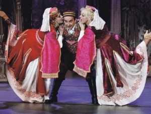 Elfogadom, hogy ennek a darabnak nem én vagyok a célközönsége, és azt is aláírom, nem minden előadásnak kell gondolkodtatnia, olykor elég csak a szórakoztatás. De hát mi szórakoztató van egy olyan történetben, ami akörül forog, hogy a haza üdvére való tekintettel ki kaparintja meg a táncosnőből lett gazdag özvegyet a vagyonával együtt? Miközben a darab férfi szereplőinek a többsége félkegyelmű, az asszonyokat meg leginkább a hűtlenség lehetőségének a kergetése motiválja. (És akkor még úriember próbáltam maradni.) Közben pedig a nőket tényleg „feltálalható” tárgynak, fogdosható, mutogatható kellékként használja az előadás. Pedig esküszöm, ha mindezt nem akarta volna komolyan venni a rendezés, és csak egy picit is mer karikírozni, olyan a mára reflektáló, kortárs, zenés előadás születhetett volna, hogy a zenekart elrejtő fal adja a másikat. Gondoljanak csak a jól házasodó gazdag özvegy és az örökségének a haza üdvére való megszerzésére! Hát nem a 21. századi Magyarország?