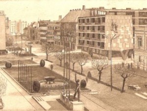 Az előző századfordulón, amikor sokszor piacként ábrázolták a teret, még fát se nagyon lehet itt látni. Ugyancsak alig látni zöld felület a harmincas évek képein, amikor a Steiner-féle ház miatt kisebb teret a 68-as obeliszk és a Szentháromság-szobor harmadolta. Az ötvenes évekből ismert fotókon se találni még nyomát zöld felületeknek. A tér első, jelentősebb parkosítására a hatvanas évek elején került sor, amikor elkészült a Munkásmozgalmi-szobor talapzata, a két korábbi emlékmű eltűnt a térről, és működni kezdtek a szökőkutak. A mainál nagyobb zöld felületnek azonban ekkor és a következő évtizedekben sincs nyoma. Ráadásul az én emlékeimben úgy él a mai könyvtár előtt rész, hogy az amolyan átláthatatlan, zöld dzsumbuj volt a nyolcvanas években.