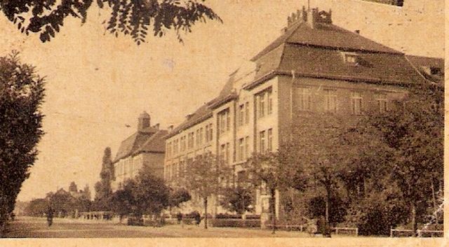 Erről a húszas évekből származó színes képeslapról sokáig azt hittem, hogy a gépiparit ábrázolja. Valószínűleg a háttérben látható víztorony tévesztett meg. Az igazság kiderítésében további képeslapok voltak a segítségemre.