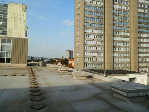 Nehéz eldönteni, hogy az Aba-Novák szárny plafonján, avagy az épület tetején, a szabadban volt-e nagyobb élmény sétálni. Az mindenesetre biztos, hogy egészen különleges olyan perspektívából látni Szolnok belvárosát, ami ritkán adatik meg. Fentről minden sokkal rendezettebb, tisztább és szebb. És olyan különlegességeket is láthat az ember, mint amire a nagyszerű túravezető, Szőllősi Judit hívta fel a figyelmünket: a Centrum felőli belső udvaron álló transzformátorház – ami a környék legrégebbi épülete – tetején ki tudja, mióta heverő sörösüveg, amit csak az építők tudtak oda felvinni lassan fél évszázada.