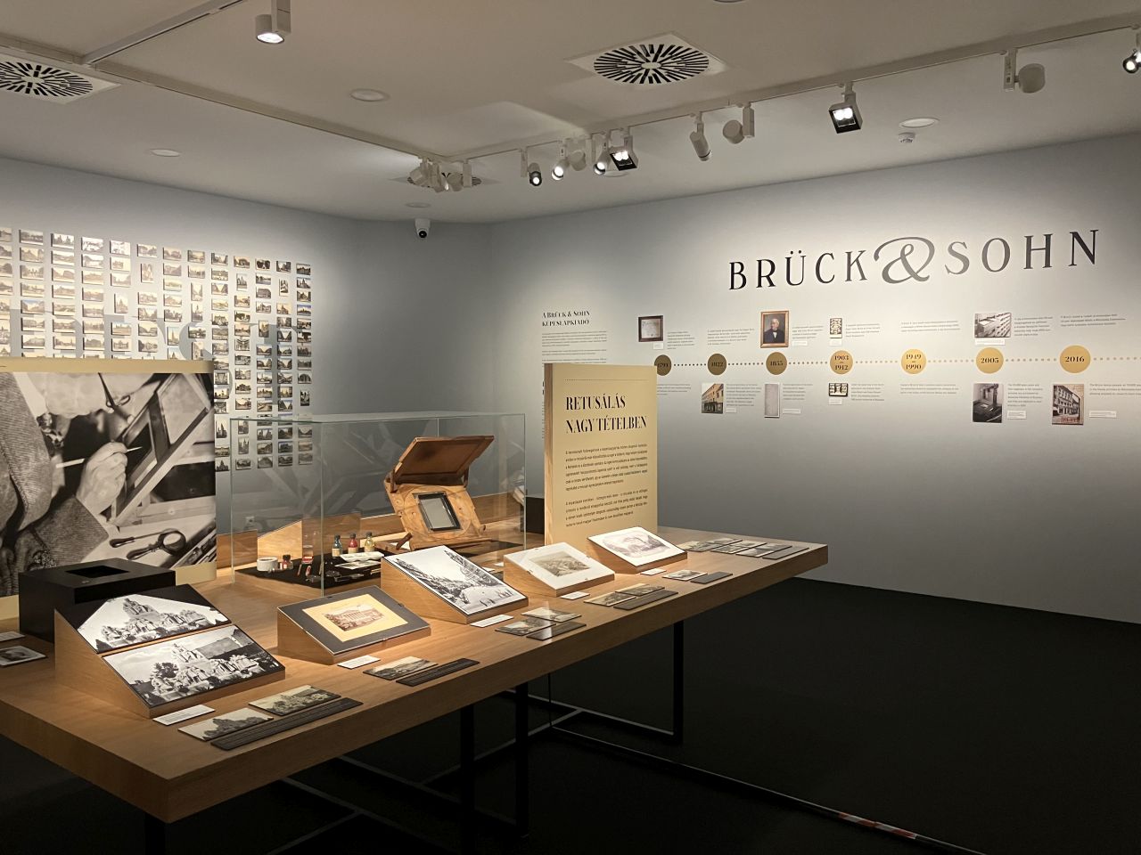 Szolnoki és képeslapgyűjtő szemmel a kiállítás legáltalánosabb – azaz, akár Szolnokon is bemutatható – része a képeslapok történetét, de leginkább retusálását, nagyítását, festését illusztráló asztal és környéke. Itt talán valamit meg lehet érteni abból, hogy a korabeli – nem éppen egyszerűen készülő – fotókból miként születtek meg azok a képkivágások, amelyekből aztán fekete-fehér vagy festett, színes képeslapok lettek, olykor nem is egyszer, és ma már elképesztően nagy tételben. Ha azt gondolnánk, hogy képekkel trükközni csak azóta lehet, hogy számítógépeken variálhatók a fotók, itt meggyőződhetünk arról, hogy egy-egy ügyes kezű mester vagy segéd már 120-130 évvel ezelőtt is csodákra volt képes.
