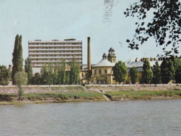 A régi képeslapokat nézegetve mindig érdekes kérdés, hogy a fotózás óta mi változott a megörökített környéken. Erre a négy és fél vagy akár öt évtizedes képre ránézve könnyedén azt mondhatnánk, hogy semmi. Vagy legfeljebb a sétány mellvédje, a gátat borító kövezet, meg esetleg a Tisza szálló teteje, ami jó ideje nem fehér palával, hanem cserépszínű anyaggal borított. De ez nem igaz. Mert jobban megnézve ezt a lapot, van, ami azóta eltűnt. Pontosabban részben eltűnt. A Tisza szálló 1928-ban emelt, a fürdő kupolájánál és a dísztorony csúcsánál is magasabb kémény. Sajnos nem tudom, hogy a felső felét, két-harmadát mikor bontották vissza. Az viszont tény, hogy ma már alig ér a körmedence tömbje fölé.
