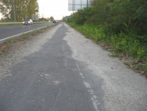 Volt egyszer egy kerékpárút. Talán az első Szolnokon. Szandára vitt a 442-es főút mellett. Ma is visz oda a gát tetején egy sóderrel foltozgatott maradék aszfaltcsík. Kellemes út.
