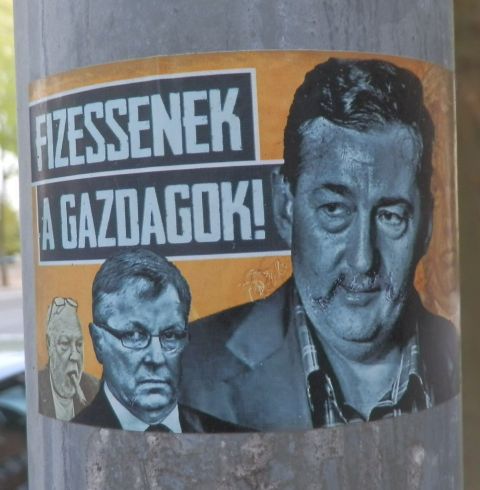 Az utóbbi években a spontán és névtelen politikai üzengetéseknek egy új fajtája is megjelent az utcákon. (Nem a hóba rajzolás, aminek néhány éve nagy keletje volt webkamerák látószögében és a Tisza-parton.) Mégpedig az apró matricák, amelyek gyorsan és tömegesen kerülhetnek a függőleges felületekre. Ezekben olykor sokkal több innovációt látok, mint a választási plakátok vagy plakáthelyek összefirkálásában, ráadásul ebben az esetben még azt se mondhatjuk, hogy az üzenetek gyártóinak az ilyesmi ne kerülne pénzébe. A népi, politikai folklórnak persze vannak olyan változatai, amelyeket már csak azért sem ártana most rögzíteni, mert egyáltalán nem biztos, hogy még évek múlva is érthetőek lesznek. (Lásd az O1G mintájára készült F1G matricát.)
