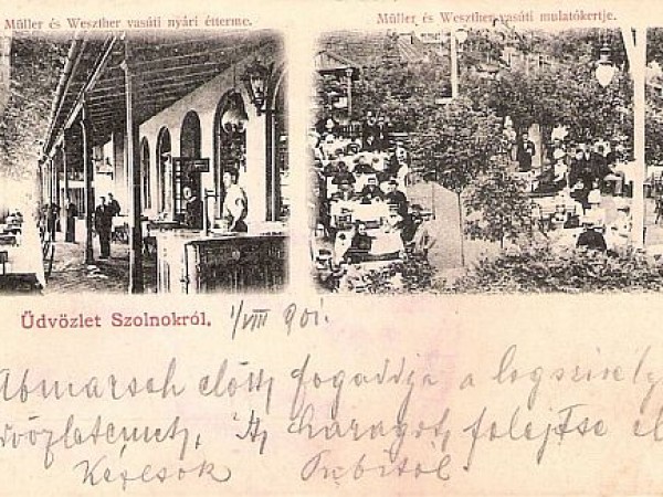 Nézzék meg ezt az egy képeslapon közzétett két, nagyjából 1900 környékén készült fotót! Olvassák el a hozzájuk tartozó feliratokat, és zokogjanak! Sirassák azt a hihetetlen múltat, amit Szigeti Henrik udvari fényképész örökített meg Szolnokon, és bár – mint a lapon olvasható felirat figyelmeztet – „Utánzás tilos”, terjesszék! Hátha tényleg ismétli a történelem önmagát, és fogunk még valamikor mulatni és nyári délutánokat tölteni a szolnoki vasútállomáson működő nagyszerű étteremben.