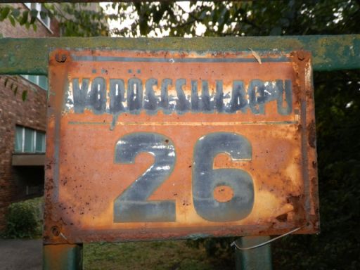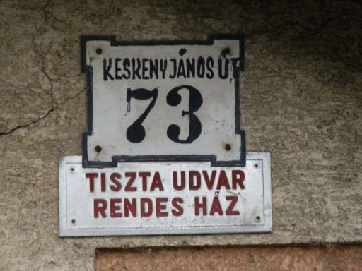 Lehet, hogy tévedek, de a legtöbb, ma már érvénytelen házszámtábla a valamikori Úttörő utcában található. Ami ugye a Felső Büge, Tehén, Konstantin, Úttörő és 1991-től ismét Konstantin változásokon keresztül jutott mai nevéhez. És, ahol legalább a házszámok helyei nem változtak az elmúlt hetvenhat évben. Hogy annak idején miért éppen ezt az utcát „tisztelték” meg a korszak ifjúsági mozgalmának a nevével, nem tudom, de szerintem a mából nézve már különösebb jelentősége nincs is. Miként a kint felejtett vagy hagyott házszámtábláknak sem, amelyeket a magam részéről ugyanúgy megőriznék, mint a régi szobrokat. Mert rólunk és nekünk mesélnek, meg segíthetnek abban, hogy majd mesélhessünk, mondjuk egy olyan korról, amit azért nem nagyon kívánnánk vissza.
