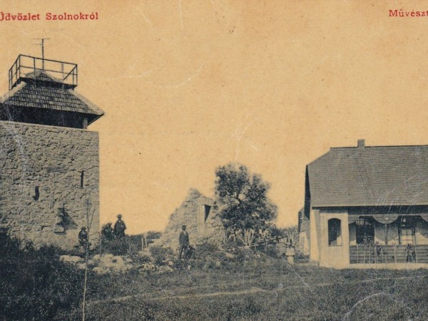 Nem hinném, hogy Józsefet vagy az édesanyját különösebben érdekelte, hogy mi látható ennek a postai levelezőlapnak a képes oldalán. Mi viszont nekik köszönhetjük, hogy az 1902-ben alapított Szolnoki Művésztelepről, és a nem sokkal később épített „művárról” egy viszonylag korai kép fennmaradt. Ráadásul olyan, ami nemcsak a teljesen újnak kinéző, Zagyvához közelebbi műteremházat, a mögötte sokáig álló parasztházat, a várromot és a tornyot mutatja, hanem – szerintem – néhány helybélit is. Akik ingben, mellényben és kalapban figyelik a fényképészt. A műtorony falánál ülő akár egy gyerek is lehetett, legalábbis a fejére kissé nagynak tűnő kalap alapján ezt is gondolhatjuk. Miként azt is, hogy ezt a képet Szigeti Henrik készítette, aki a művésztelep megnyitása után előszeretettel örökítette meg az akkor új helyet.