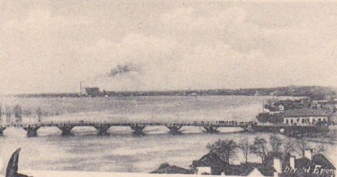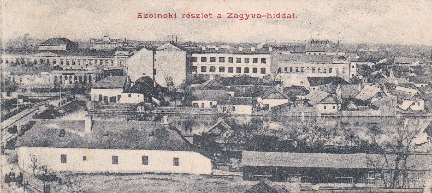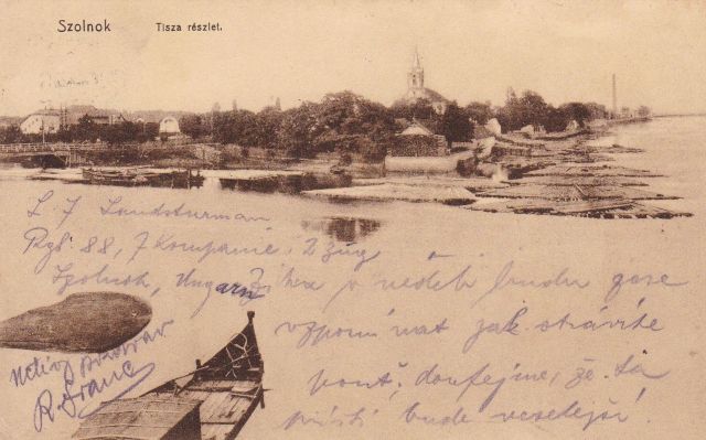 Ezt a fotót, ami egy az első világháború idején Szolnokról a Monarchia távoli pontjára küldött képeslapon maradt fenn, egész biztos, hogy 1912 után készítették, egy újabb árvíz idején. A kép bal szélén ugyanis ott fehérlik a Damjanich-emlékmű, amit 1912. március 19-én avattak fel. Jól látható, hogy a megáradt Zagyva majdnem az 1926-ig álló fahíd – helyén ma a Nyáry Lőrinc-híd szolgál bennünket – alját súrolja, miközben a torkoltnál nagy mennyiségű, úsztatott fa vár a sorsára. Nem vagyok hozzáértő, de laikusként kicsit ijesztő belegondolni, hogy milyen lehetett, amikor az Erdélyből úsztatott hatalmas fákat az áradás elkezdte megemelni és mozgatni.