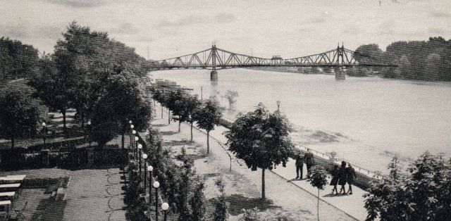 Ez a kép már a második világháború idején készülhetett. És kicsit azt is bizonyítja, hogy bizony a természetet hidegen hagyja az emberi hülyeség. Áradások fegyverropogások idején is voltak. A Tisza szálló fagyizója fölötti erkélyről készült képen jól látszik, hogy a Tisza akkor épp a város felőli töltés aljánál lehetett, a mai rakpart, úgy ahogy most is, víz alatt volt.