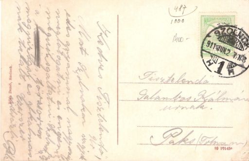 Bármilyen meglepő, de a Róth Dezső által megjelentetett színes képeslap az idősebb, hiszen azt 1911. június 27-én küldték Szolnokról Paksra. Feladója egy bizonyos Béla, aki az édesanyjával tartózkodott az első világháború előtt Szolnokon, és arról tudósítja Galambos Kálmán tisztelendő urat, hogy a törzsorvos megvizsgálta, és alkalmasnak találta. Hogy pontosan mire, az nem derül ki a pár sorból, miként az sem, miért éppen Szolnokra utazott a fiatalember orvosi vizsgálatra édesanyjával. Abban viszont nem kételkedhetünk, hogy a tisztelendő úr és a fiatalember között szorosabb kapcsolat lehetett, ha így, fél mondatokból is megértették egymást.