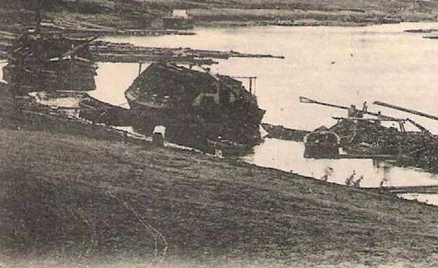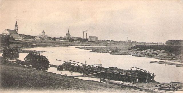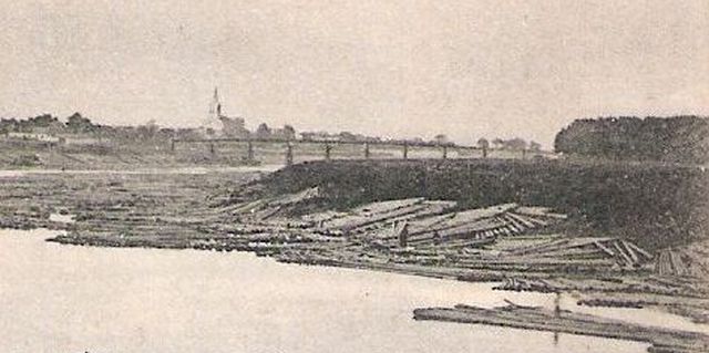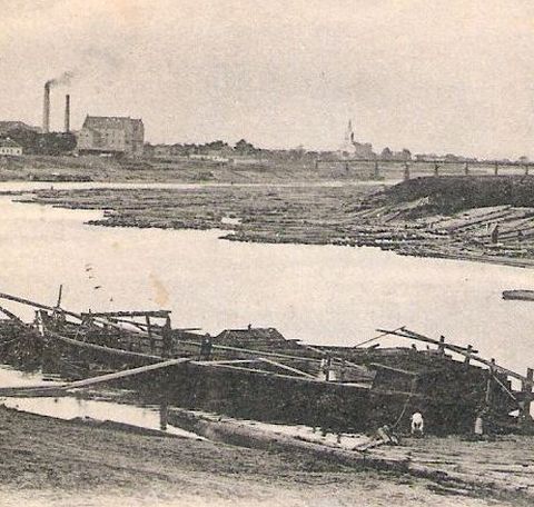 Ez leginkább a Tisza bal partja, a mai Tiszaliget miatt érdekes, hiszen így fogalmunk lehet a terület 112 évvel ezelőtti állapotáról. A töltés mögött nem nagyon volt semmi, csak erdő, a gátoldalt pedig leginkább az úsztatva érkezett fa tárolására, szárítására használták. A képen látható, elképesztő mennyiségű faanyagot egyébként a másik parton álló fűrészüzemekben dolgozták fel, és csak azért tárolták a bal parton, mert ott volt kisebb a folyó sodrása. Egyébként a Tiszán lebegő faanyag remekül árulkodik arról is, hogy az előző századfordulón Szolnok iparában jelentős szerepük volt a fűrészüzemeknek.