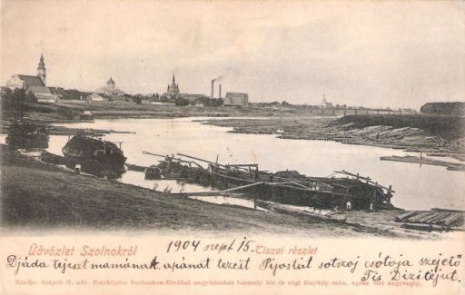 Egyértelmű, hogy Szigeti Henrik e képeslapon közzétett fotója sokszor, sokféle kivágásban került anzikszokra. Miként ennek az 1904. szeptember 15-én postára adott lapnak köszönhetően az is világos, hogy az eredeti fotó 1899 és 1904 között készülhetett a Tisza szolnoki nagy kanyarjánál, nagyjából a mai dohányfermentáló alatt.