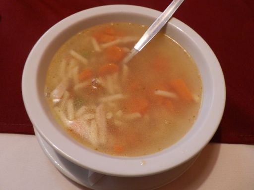 Mert magával a vasárnapi ebéddel egyébként ki lehetett volna békülni. Az Újházi tyúkhúslevest ugyan zavarosra forralva hozták ki, és a hús olykor zavaróan sósabb volt, mint a lé, de nem hagytuk ott. A kétszemélyes Kassai tál teljesen rendben volt, sőt a sülthagymát egész jól eltalálták. Az Erdélyi roston tál is olyanra sikerült, mint vártuk, a lecsós rizs pedig kifejezetten érdekes volt számomra. Az egészet záró Rákóczi-túrós palacsinta sem múlta alul az elvárásainkat, kis odafigyeléssel, némi tálalásai trükkel, akár a ház desszertje is lehetne. Szóval a konyha alapvetően rendben van, már csak azért is, mert egy ilyen helyen valami hasonlóra számít az ember.