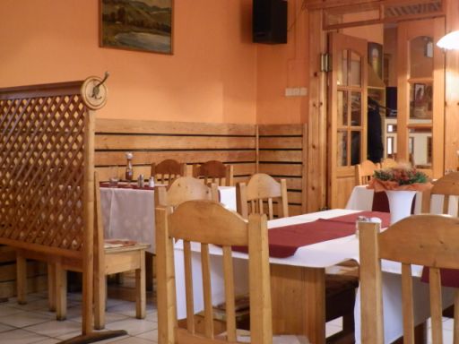 Amíg azonban egy vállalati étkező hangulata köszön vissza az asztalnál, addig ez nehéz lesz. Nem a belső dizájnnal van a baj, hanem annak a szocreál megkopottságával. Persze visszás a letakarítatlan, morzsás asztal, azonban sokkal jobban szíven üt az igénytelen, kicsit koszos benyomást keltő, gyűrött műanyag lefűzőkbe bújtatott, műbőrborítású étlap. Amire rátesz egy lapáttal a menzás szalvéta, és az a borzalmas fehér leveses tányér, ami tényleg csak az önkiszolgáló kantinok jellemzője, és amiben a világ legjobb levese is leértékelődik. A kávé mellé kihozott piros tetejű, gnóm cukorszórón pedig már tényleg csak nevetni lehetett, pedig sírni lett volna jó.
