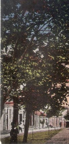 Induljunk a mi nézőpontunktól. A fotós valahol a mai Fradi-ház és az Árkád átjárója között állíthatta fel gépét. Ez a nézőpont pedig – korábbi képeslapok alapján – megkérdőjelezi, hogy a fotós mellett olyan harminc-negyven éves fák álltak volna, mint amilyenek a kép bal szélére belógnak. Valószínűbbek az olyan csemeték, amilyeneket a nagy fák után látunk. A XX. század első évtizedéből ilyeneket ismerünk a Baross és a Szapáry utcákról is. Természetesen nem zárom ki, hogy a fák tekintetében tévedek.