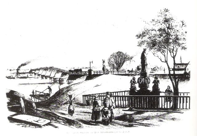 Mint az Illustrirte Zeitung című lapban, 1851-ben (máshol 1857-es dátum szerepel a forrás mellett) megjelent rajzból kikövetkeztethető, a szolnoki Nepomuki Szent János szobor eredetileg valahol a Tisza és a Zagyva torkolatánál állt, azaz naponta láthatták a városon átutazók, de az akkori szolnokiak többsége is. A rajzot nézegetve nekem úgy tűnik, hogy a klasszicizáló, késő barokk stílusú szobor nagyjából a mai Zagyva híd belváros felőli hídfőjénél, valahol a Pólya Tibor út elején volt eredetileg. Persze akkoriban még messze nem volt az út szintje így feltöltve, mint most.