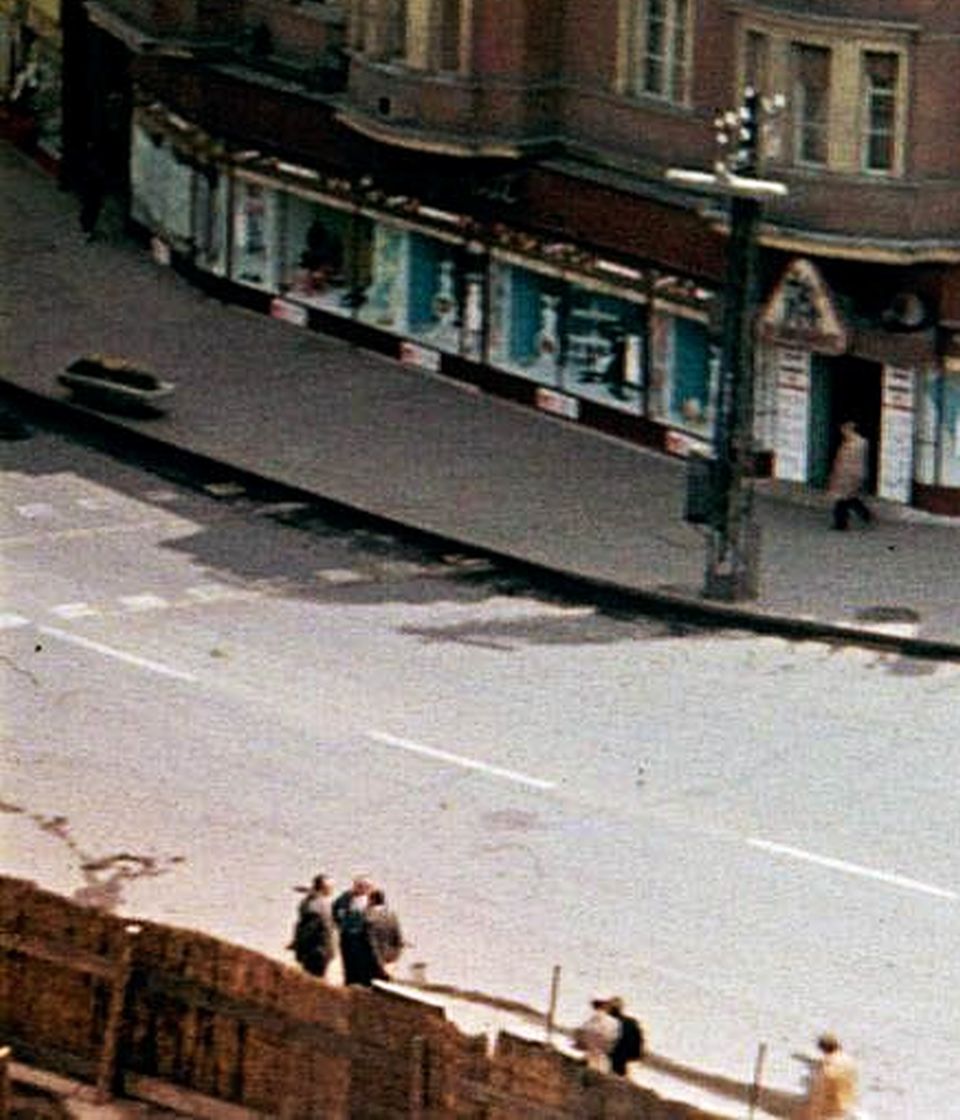 Sajnos nem tudom, ki fotózhatta le a még épülő pártházból a Nerfeld-palotát 1964 vagy 1965 kora tavaszán, munkanapon, déltájban, megörökítve ezzel a mai Szapáry út elejét is. Mindez akkor történt, amikor a Ságvári még nem volt körút, a Nerfeld-palotában pedig nem a Centrum áruház működött.