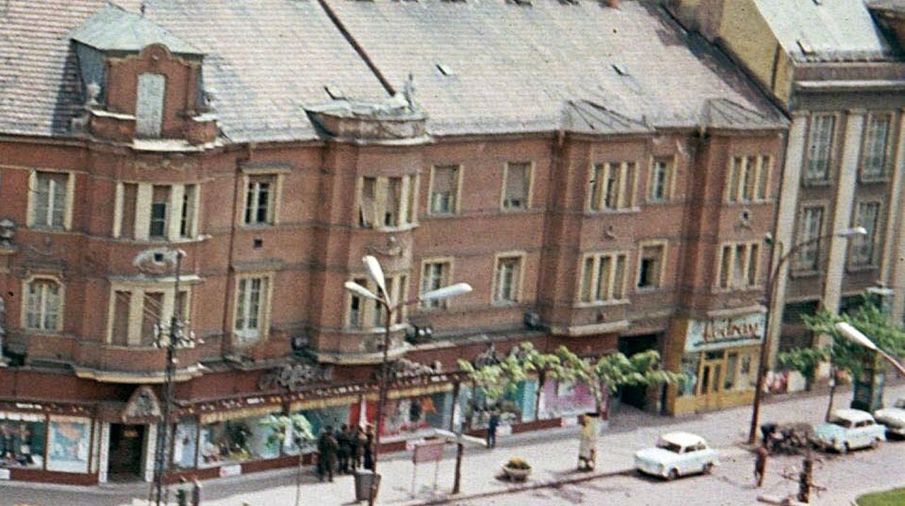 A kép egyébként 1929-ben elkészült Nerfeld-palotára fókuszál, ami a fotózás pillanatában 34-35 éves volt, azaz épp egy évtizeddel fiatalabb, mint ma az Agóra régi tömbje vagy éppen a Skála. Mivel a felvétel bal alsó sarkában még látható az a kerítés, ami a mai Boldog Sándor István körút elején egykor álló szecessziós Kereskedelmi Bank bontása miatt került oda, ugyanakkor a Nerfeld-palota fölött, a Tisza szálló tornya előtt már a színház szocialista homlokzata dereng, egészen biztos, hogy az ismeretlen fotós 1964 vagy 1965 kora tavaszán dolgozott. Tehát akkor, amikor a Nerfeld-palota üzlethelyiségeinek legnagyobb részét még az egykori Állami, ekkor éppen Alföldi áruház foglalta el, amiből majd csak 1966-ban lett Centrum. Hogy aztán még alig három évig működjön ezen a helyen a szolnoki Centrum áruház, ami azonban éppen elég volt ahhoz, hogy az 1969. április 11-ei tűzre és a helyre is a legtöbb helybéli ma is úgy hivatkozzon: Centrum-sarkon.