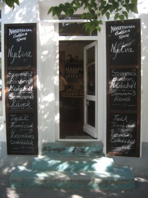 Az utcára nyíló, fekete táblás, ajtónyi méretű, dupla spaletták olyanok a Szapáry úton, mintha száz évvel ezelőtt felejtették volna itt őket. Pedig az egykori függöny- majd festékbolt helyén csak alig két hete csalogatják a krétával írt feliratok a vendégeket. Akik jobban teszik, ha nemcsak az ajtó melletti hatalmas üvegportálon kukkantanak be. Mert azt hiszem, nemcsak a magyar árut kellene védenünk és támogatnunk annak érdekében, hogy végre fellendüljön a gazdaság, hanem az olyan kis hazai üzleteket is, mint a Szapáry úton nyílt Nosztalgia Csokibár és Kávézó.