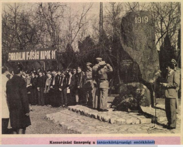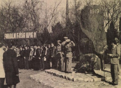 Nem visszaállítani szeretném azt az emlékkövet, csak rögzíteni, hogy legalább húsz éven keresztül ilyen köztéri alkotása is volt Szolnoknak. Ahol minden március 21-én – a Forradalmi Ifjúsági Napok második jeles dátumán – ünnepi beszéddel egybekötött koszorúzásokat rendeztek. Amikor az Abonyi út iskola úttörőcsapata mellett busszal kihozott KISZ-es középiskolások, ifjúgárdisták, illetve a „párt és a tömegszervezetek képviselői” emlékeztek. Igaz, a korabeli Néplap évről-évre megjelenő tudósításai szerint, nem túl változatosan. De ez is a történelmünk része.