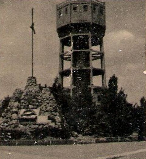 A jobb alsó sarokban a mai Közgé és a megyei rendőrkapitányság között található Árpád-ház nevű lakóházat látjuk még első funkciója idején. Lépcsőházi homlokzatán mintha az eredeti koronás címert látnám, ami ugye a második világháború után tűnt el. A vadszőlő viszont már alaposan befutotta, így biztosak lehetünk abban, hogy sok évvel az épület átadása előtt lett megörökítve a Trianon után Szolnokra telepített intézmény. A középső kép pedig a megcsonkított országra is emlékeztető Országzászlót mutatja, ami az Eötvös téren, az akkor még működő víztorony előtt, szerintem a ma ott álló 68-as obelszik helyén lehetett.