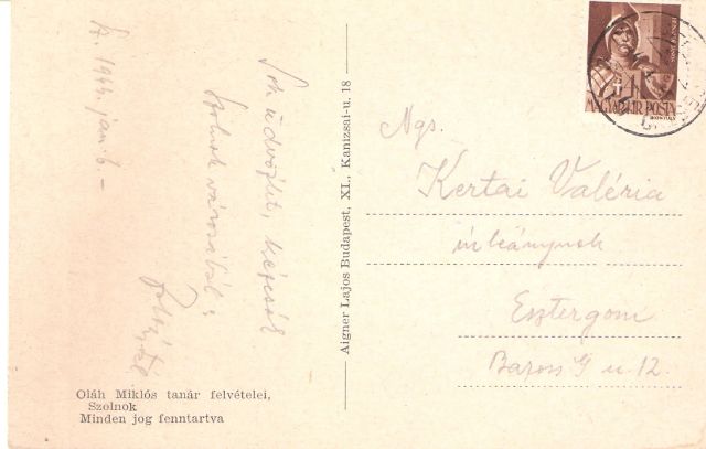 Olyan sokszor panaszkodtam már amiatt, hogy a képeslapokra a múlt század első évei után nem írták rá, hogy az azokon használt fotókat kik készítették. És erre itt egy képeslap a negyvenes évekből, amelyen az szerepel: Oláh Miklós tanár felvételei.