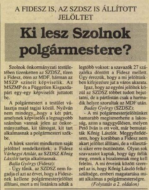 Ugyanezen a napon három alpolgármestert is megválasztott a testület. Így a 38 éves Kőnig László polgármester mellett a 41 éves Budai György – egyben a 10-es körzet egyéni képviselője – a 38 éves Kéri József – az SZDSZ és a Fidesz közös jelöltje – és a 27 éves Várhegyi Attila – aki a Fidesz listájáról jutott a testületbe – lettek Szolnok új vezetői. Legalábbis 1991-ig. De az már egy másik írásra tartozik. Miként az első képviselőtestület tagjaira is térjünk vissza egy hónap múlva.