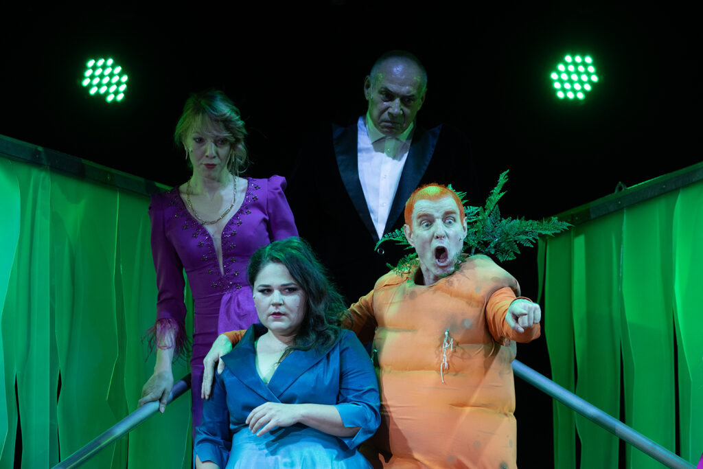 A Budaörsi Latinovits Színház október elején mutatta be az Offenbach operája alapján készült, idehaza talán még soha sem játszott Répakirály című darabot. Elöljáróban azonban fontos leszögezni, hogy bár a darab rendezője Kovalik Balázs – akinek előélete és kvalitásai alapján egy normális világban a Magyar Állami Operaház főigazgatójának kellene lennie –, mégsem egy klasszikus operáról van szó. Inkább egy olyan zenés darabról, amiben olykor felhangzanak komolyzenei alapokon nyugvó dalok, az alapvetően prózai színház művészei által egész vállalható módon interpretálva. A színpadon félig takarásban elhelyezett zenekar kíséretében felcsendülő dalokkal igazából két baj van: egyrészt nem mindig érthetők, másrészt Závada Péter dalszövegei – tehát nem az eredeti mű fordításairól van szó – nem vehetők kézbe, pedig jó lenne őket hazavinni és idézni. Szerintem önállóan is megállnák a helyüket.
