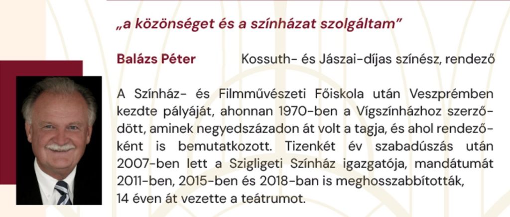 Nincs közös fotónk. Nem nevezhetem másnak, legfeljebb egykori ismerősömnek, Ám azt sem mondanám, hogy soha sem dolgoztunk együtt, hiszen szolnoki tizennégy évéből tizenegy úgy telt el, hogy a blogSzolnok hasábjain rendszeresen írtam a színházáról. És sokszor nem bántam vele kesztyűs kézzel, amikor a rendezéseiről vagy a szerepeiről szólt a recenzióm. Balázs Péter azonban ezeket a helyén tudta kezelni. Meg nem fordult a fejében, hogy kitiltson a színházból vagy annak környékéről, megpróbáljon ellehetetleníteni vagy elhallgattatni, velem szemben mindig vérbeli úriember volt. Sőt, ha találkoztunk, mint egy kedves nagypapa, úgy beszélgetett velem a színházról és a világ dolgairól. Nem tudom, nem is érdekel, mit gondolt vagy mondott rólam egy-egy cikk után, a mai naptól számomra ezek a találkozások, az egymás szemébe nézések a fontosak. Nekem ma az a Balázs Péter ment el, akivel Szolnok különböző pontjain, csak úgy beszélgethettem.
