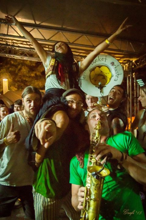 Az Örökség Világzenei Fesztiválok történetében eddig háromszor volt eső: 1996-ban, 1998-ban és 2015-ben. A kanadai Lemon Bucket Orchestra az utolsókor lépett fel. Persze ők is csak állampolgárság szerint kanadaiak, mert a vezetőjük például ukrán, a tagok között pedig szerbek is vannak, és bizony jobban őrzik a saját kultúrájukat, mint a szüleik, akik egykor kivándoroltak. Szóval éppen csak elkezdődött a koncertjük, amikor leszakadt az ég. De ők nem hagyták abba, hanem felhívták a fedett színpadra a közönséget is, és mivel csak akusztikus hangszereik voltak, az esőben ott folytatódott a koncert. Fergeteges buli lett a vége.