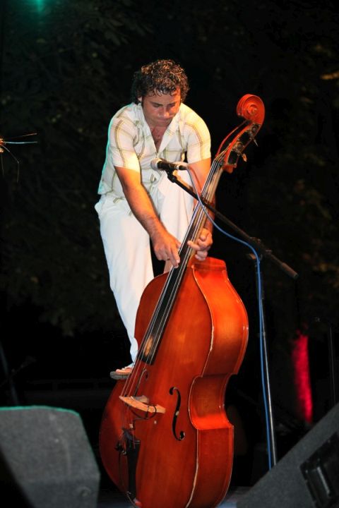 A kép azt a pillanatot örökíti meg, amikor az egyébként zseniálisan játszó fiú, egyszer csak felugrott a kölcsön bőgő oldalára, és úgy játszott tovább. A hangszernek semmi baja sem lett, de én azért kellő frászban voltam a koncert végéig.