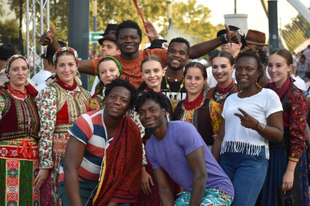 Azért szeretem ezt a tavaly készült képet, mert számomra a legjobban fejezi ki mindazt, amit csinálunk, ami a világzene lényege. A Benin International Musical nevű formáció volt a vendégünk, akik afrikai motívumokkal átszőtt, valódi woodoo népzenét játszanak. A koncertjük másnapján jöttek át a Tiszavirág-hídon, amikor meglátták az augusztus 20-ára próbáló Tisza táncegyüttest. Hát nem kellett sok, hogy egymásra találjanak a benini fiúk és a magyar lányok, amit szerencsére sikerült megörökíteni is.