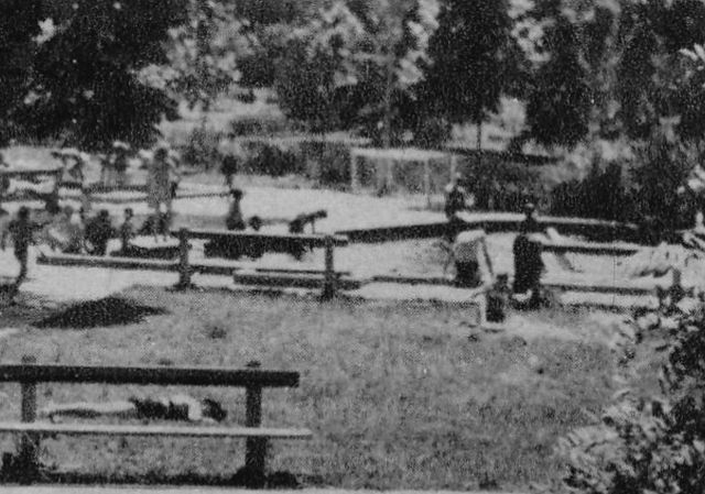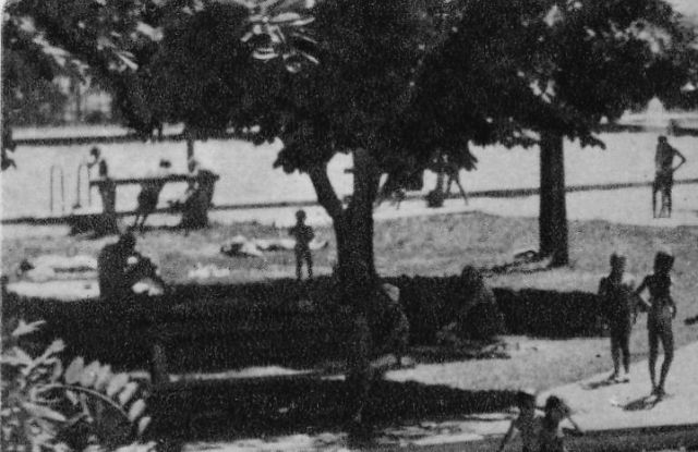 Mivel lassan felnő egy generáció, akiknek nem lehetnek személyes emlékeik a Damiról, talán érdemes elmondani, hogy az egykori fürdőnek – a fedetten kívül – négy medencéje volt. Ezek közül három látható ezen a szerintem az ötvenes években készült fotón: az előtérben a gyerekmedence, tőle jobbra, hátul a termál, balra, fent pedig az 50 méteres sport vagy hideg. A negyedik medence az 50 méterestől még balra, a bejárat mellett volt, és szintén remek meleg vízben lehetett benne ücsörögni. Bevallom, nem tudom, hogy az ezen a képen nem látható negyedik medence már az 1949-es nyitáskor készen volt, vagy csak valamivel később, a Dami saját kútjának a megnyitása után adták át. Az azonban biztos, hogy telente azt a termált, az 50 méterest és a lelátó alatti medencét lehetett használni, az ezen a fotón lévő pancsoló és másik meleg csak május 1-je és október eleje között várta a vendégeket.