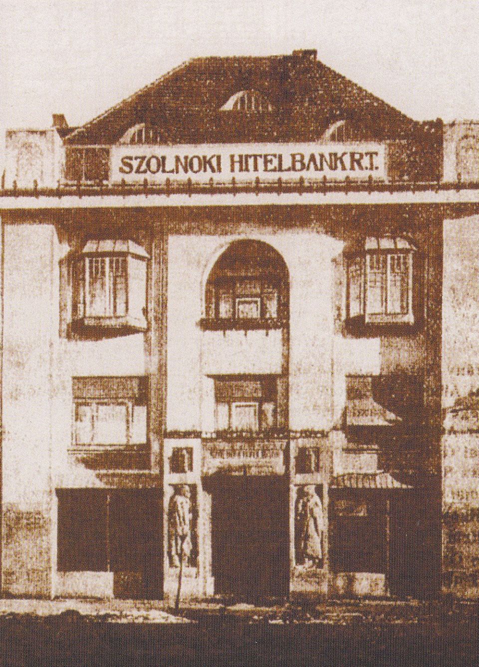 Azt azonban nem tudhatjuk pontosan, hogy ez a dombormű mikor és milyen körülmények között került Szolnokra. Csupán abban lehetünk biztosak, hogy a Szapáry úti Szolnoki Hitelbank Rt. – a mai nagy OTP helyén – 1937-ben lebontott épületének főbejáratát díszítette az 1920-as években ez a dombormű, illetve az eltűnt párja. Ezt ugyanis alátámasztja az a fotó, ami Kardos Tamás Múltlapozgató című albumának 116. oldalán található. Ugyanakkor semmi nem utal arra, hogy ezek a domborművek már a bank 1912-es építésekor ide kerültek volna, miként persze nem is zárja ki semmi.