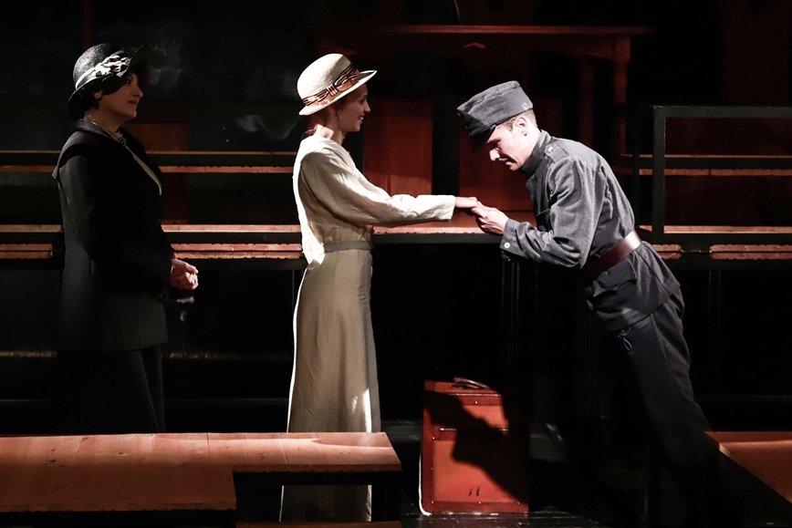 Ehhez persze hozzájárul az ugyancsak Valcz Péter által megálmodott díszlet és kellékek is. Amiknek a kapcsán nem lehet megállni, hogy ne jegyezzük meg: egy előadás nem attól jó, ha mindent vizuálisan is a néző szájába rágnak. A Bakaruhában díszlete és kellékei egyrészt minimálisak és sokszor csak jelzés értékűek, másrészt kiváló terepei a színészi játéknak, meg a nézői gondolkodtatásnak. Nézőként nemcsak a takarások eltüntetése miatt vagyok benne ebben a darabban, hanem mert az első világháború Kolozsvárja, polgári otthona, bérháza és korzója nem a színpadon, hanem az én fejemben születik meg. Az első pillanattól kezdve játszótárs, bevont partner vagyok, amiben lubickol a lelkem.
