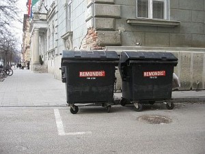 Személy- vagy teherautónak minősül egy ekkora kuka? Ha nincs szélvédője, hová kell rakni a parkolójegyet vagy a bérletet? Amennyiben rendszeresen nem fizet a tulajdonosa a parkolásért, ezekre a kerekekre is jó az új kerékbilincs? Ki kit lop meg, amikor egy potenciális fizetős helyen autó helyett kuka parkol? Rokkant igazolványt nem találtam rajta!