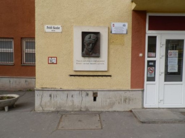 Mindennek persze az égvilágon semmi köze nincs ahhoz, hogy hány emlékműve van a városban Petőfi Sándornak. Egyébként négy. Annak ellenére, hogy önálló, teljes alakos Petőfi-szobrunk nincs. A négyből az egyetlen „szobor” Pogány Gábor Benő Koltón álló, Petőfit és Szendrei Júliát együtt ábrázoló alkotásának a másolata, ami a Helikopter Bázis művelődési házában található. A többi dombormű, amelyek közül az egyiket a néhai Kertvárosi Általános Iskolában leplezték le 1973. március 15-én. Hogy a helyén van-e még, sajnos nem tudom. A legrégebbi Petőfi-emléktábla az egykori Kaszinó, ma Technika Háza buszmegálló felöli falán található. Ezt 1948-ban, a forradalom centenáriumán helyezték el az alatta lévő – erősen magyarázatra szoruló – emléktáblával együtt.