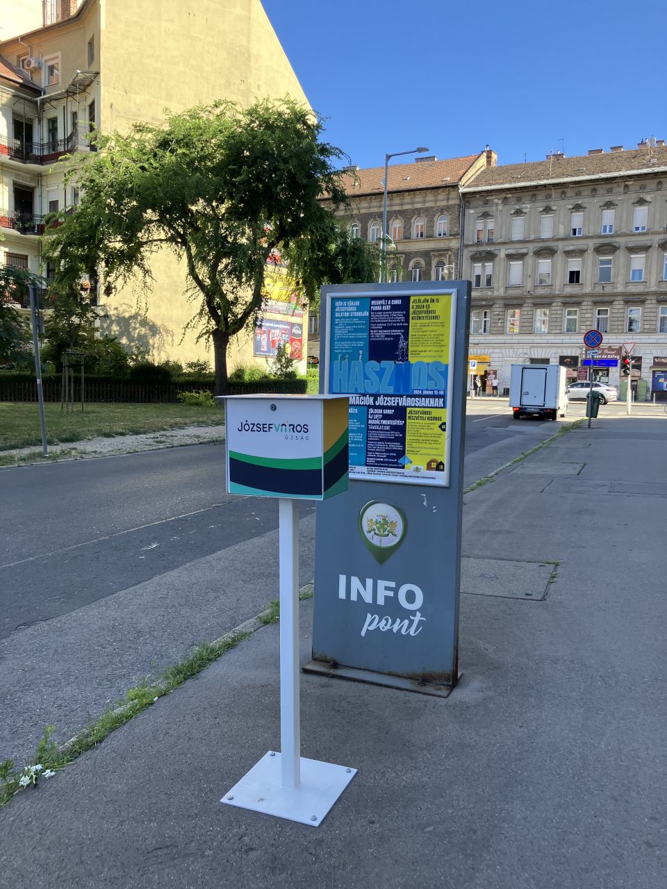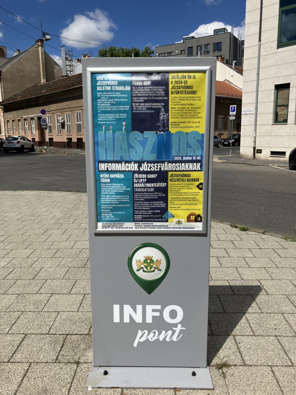 Persze az egész szót sem érdemelne, ha sétáim során ezt az egy tájékoztató plakátot láttam volna. Azonban a mellékelt információs pontot az egykori Köztársaság, ma II. János Pál pápa tér sarkán vettem észre és örökítettem meg, hogy aztán több helyen, például a Corvin mozinál is találja ilyet. Július első napjaiban a helyi napközis táborról, a Cinka Panna kertről, Józsefváros balatoni strandjáról, helyi társasházi pályázatról, az éves kitüntetésekre való javaslatokról és a Józsefvárosi részvételi kisokosról olvashattam. Azaz csupa olyan dologról, ami amúgy valóban érintheti azokat, akik Pikó Andrást mondhatják polgármesterüknek, aki láthatóan nem a hivatal magányában, pártkatonái védelmében vezeti a rá bízott „települést”, aminek népessége Szolnokéval vetekszik. Nem véletlen, hogy június 9-én nemcsak megőrizte tisztségét, de a lakók szavazatainak köszönhetően pozícióját is megerősítette.