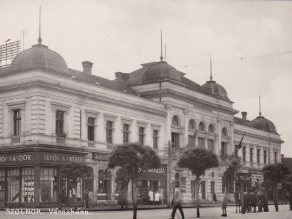 Közismert, hogy Szolnok a megyeszékhelyhez méltó városházát kölcsönből építette 1882-84 között. A hitel visszafizetése pedig az épület földszintjén sorakozó üzletek bérleti díjából történt. A mellékelt képeslap azt is igazolja, hogy jó befektetés volt egykor a Kossuth téren üzletet működtetni, hisz akadt olyan, amelyik évtizedekig működött Szolnok egyik "plázájában".