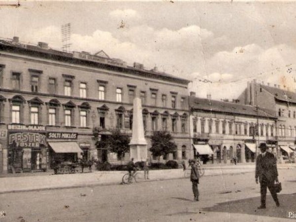 Az itt látható képeslap megjelenésének évét nehéz meghatározni sérülései miatt. A térről készült korábbi és későbbi lapokkal összevetve azonban nem tévedünk nagyot, ha azt gondoljuk, hogy a két világháború között tehette le a fotós a kameráját a tér és a Magyar utca kereszteződésébe.
