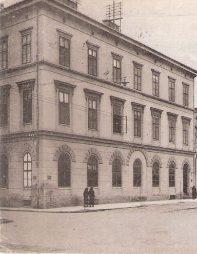 Azt mindenesetre érdemes észrevenni az épületen, hogy a bejárata nem a mai helyén, hanem a saroktól legtávolabbi boltozat alatt volt. Legalábbis száz évvel ezelőtt. Mert épp a hét boltozat közül középsőnek számító negyedik árulja el, hogy korábban ott lehetett a kapu, ahol azt ma is találjuk. De hát nincs ezen mit csodálkozni, hiszen a fotózás pillanatában is egy majdnem hatvan éves épületről van szó, aminek lábazata körül meglehetősen vizesedett a fal.